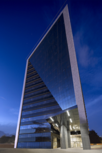 Inicio » Construcción Sostenible » Edificio Paralelo 26, Primer Proyecto de Oficinas con Certificación LEED Platino de Colombia » edificio-paralelo-26-entero-fachada-azul
