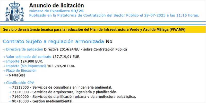 El Ayuntamiento de Málaga impulsa la elaboración del Plan de Infraestructura Verde y Azul, un documento estratégico que marcará el rumbo de la planificación urbana para hacer frente a los desafíos del cambio climático. El objetivo es incrementar, mejorar y conectar las zonas verdes de la ciudad, así como integrar de forma activa los ríos y el mar en el modelo de desarrollo sostenible de Málaga y en la conservación de los ecosistemas locales. La asistencia técnica para redactar el plan ha salido a concurso con un presupuesto de 124.980 euros y un plazo de ejecución de seis meses. Las empresas interesadas podrán presentar sus ofertas hasta el 14 de agosto.