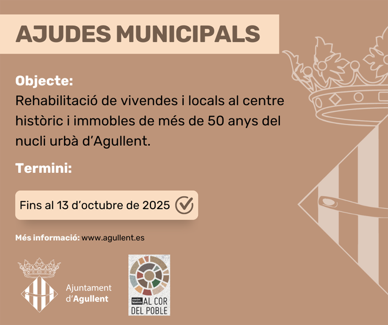 Hasta el 13 de octubre está abierto el plazo para solicitar las ayudas a la rehabilitación de viviendas en Agullent.