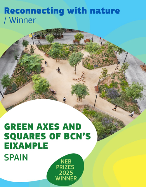 En una ceremonia celebrada en Bruselas, la Comisión Europea ha anunciado los ganadores de los Premios Nueva Bauhaus Europea (NEB) 2025, edición en la que han resultado galardonados 22 proyectos, uno de ellos español: Green Axes and Squares. Por quinto año consecutivo, estos premios han reconocido proyectos e iniciativas que combinan sostenibilidad, inclusión y estética, demostrando cómo la integración de la cultura, la tecnología, la innovación y el diseño puede enriquecer la vida de las personas y las comunidades.