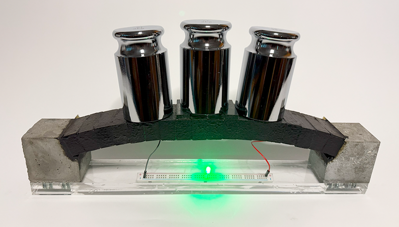 Una estructura de arco de hormigón de carbono conductor de electrones (ec³) integra electrodos de supercondensador para una doble funcionalidad.