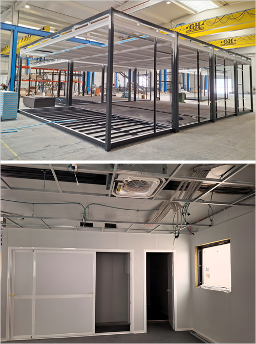Para responder a estas exigencias, ajustamos todos nuestros procesos, desde la fase de diseño hasta el montaje final. Cada módulo se proyecta en entorno digital, integrando normativas aplicables, control de calidad riguroso y trazabilidad completa de materiales y procesos. La colaboración estrecha con arquitectos, ingenieros y responsables de obra nos permite anticipar interferencias, adaptar soluciones y garantizar que cada módulo cumpla con los requisitos técnicos y operativos del proyecto.