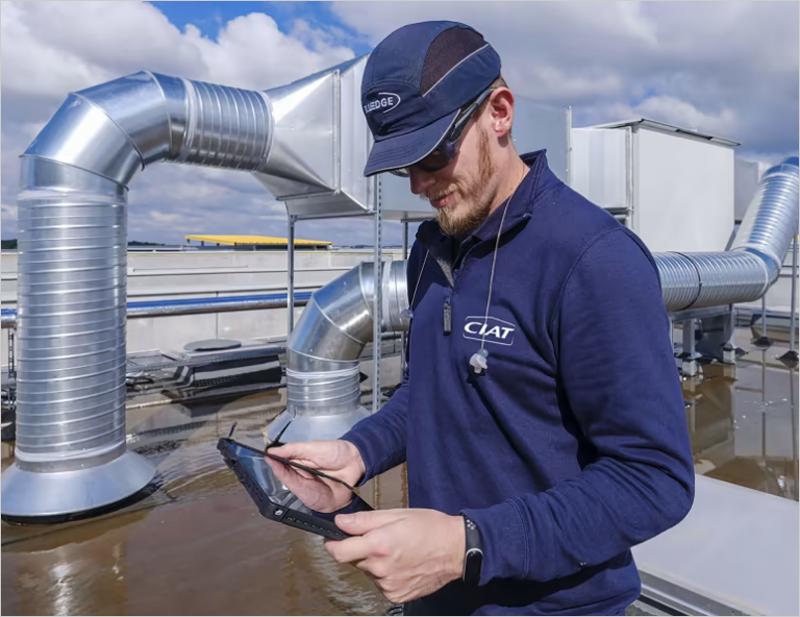 La apuesta de CIAT por la digitalización se refleja claramente en la gama Floway. Los clientes pueden acceder a los contratos de servicio BluEdge —en sus modalidades Core, Enhance y Elite—, que incluyen la monitorización continua a través de la plataforma Abound HVAC Performance. Esta solución basada en tecnología IoT recopila datos en tiempo real, anticipa posibles fallos y ofrece informes periódicos con recomendaciones para optimizar el rendimiento de las unidades.