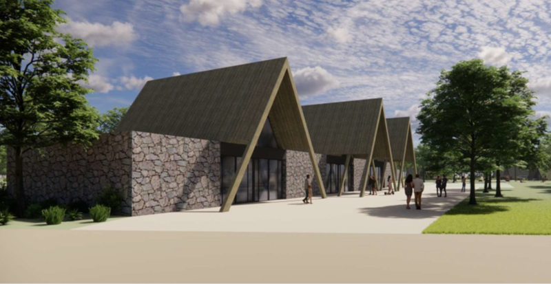 El diseño del Camping Eco Lodge se estructura en cinco áreas de desarrollo. La zona de acceso contará con un edificio de 150 m² destinado a recepción, tienda, administración, vending y área de internet, acompañado de un aparcamiento con capacidad para 50 vehículos. Las zonas comunes reunirán 300 m² con bar-restaurante, aseos, vestuarios y zona de lavado, además de dos piscinas al aire libre —una de 25 × 12,50 metros y otra infantil— con un espacio verde de solárium.