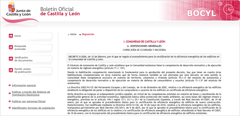 La aprobación de un nuevo Decreto por parte de la Junta de Castilla y León regula el procedimiento para la certificación energética de edificios y el registro de los certificados de eficiencia en la edificación, adaptándolos a las exigencias de la normativa estatal y europea. La norma, que deroga la anterior, ofrece a los consumidores información pública y objetiva sobre el comportamiento energético de los edificios, aumentando la transparencia en el mercado inmobiliario.