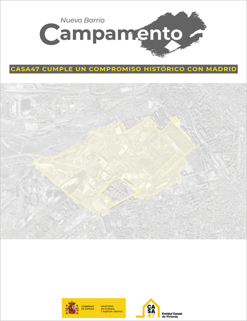 El proyecto Nuevo Barrio Campamento, desarrollado por CASA47, Entidad Estatal de Vivienda adscrita al Ministerio de Vivienda y Agenda Urbana, se perfila como una de las principales operaciones de vivienda asequible y regeneración urbana en Madrid. Sobre una superficie de 211 hectáreas en el suroeste de la capital, el plan combina vivienda asequible, sostenibilidad urbana, movilidad sostenible y equipamientos públicos con el objetivo de aliviar la tensión del mercado residencial y transformar un antiguo espacio militar en un nuevo tejido urbano integrado. En concreto, se construirán 10.700 viviendas asequibles, incorporando soluciones basadas en la naturaleza, sistemas urbanos de drenaje sostenible y zonas verdes, entre otras. A principios de este año comenzaron las obras de demolición de varios inmuebles dentro de este proyecto residencial.