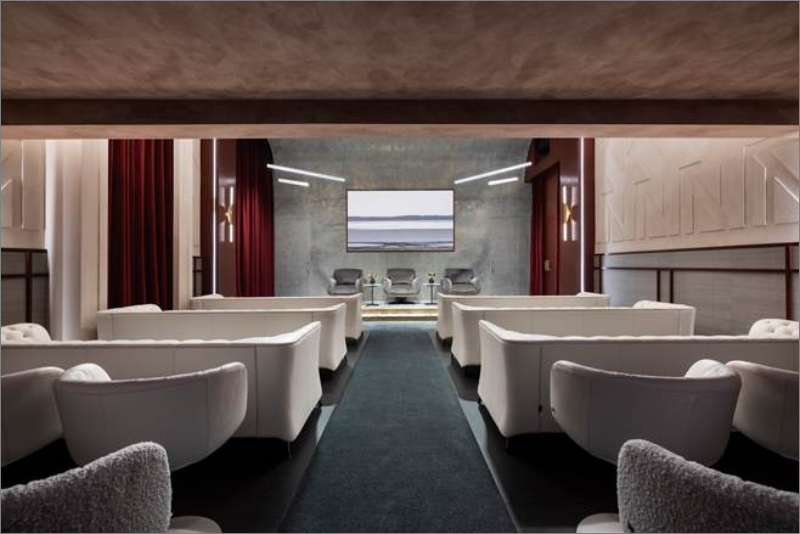 Además, el miniproyector de alta gama XR10 con tecnología triple láser 4K, capaz de proyectar entre 80″ y 300″, se integra perfectamente en el estilo Neo-Deco del espacio, ofreciendo una experiencia de cine en casa con gran brillo y color, incluso en entornos iluminados.