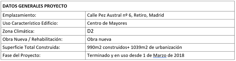 Se ha construido en Madrid, en el Distrito de Retiro, un edificio municipal de gasto energético casi nulo. Se trata del Centro de Mayores situado en la calle pez Austral 6 en el barrio de la Estrella.