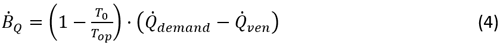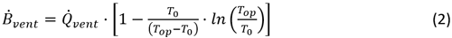 La diferencia entre la demanda total y este calor Q ̇vent se debe aportar como calor al recinto, a la temperatura Top, de manera que la exergía complementaria a aportar es: