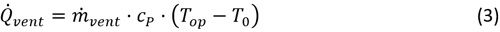 donde Q ̇vent es el calor que hay que aportar para calentar el aire hasta la temperatura del recinto: