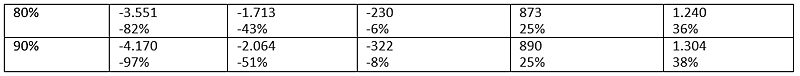 - Superficies acristaladas a norte: 10%, 20%, 30%, 40%, 50%, 60%, 70%, 80% y 90%